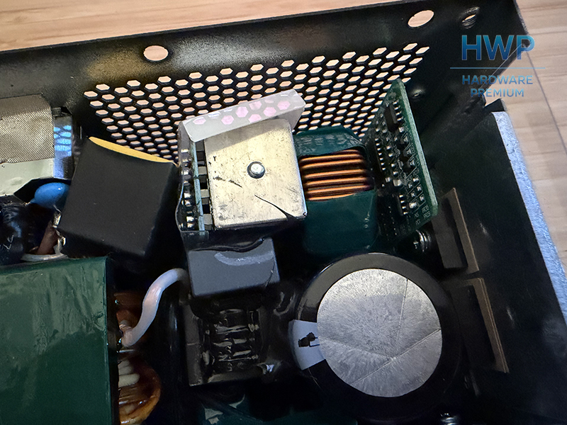El APFC permite alcanzar un factor de potencia cercano a 0,97, reduciendo pérdidas y además mejorando la eficiencia global. El diseño double forward es habitual en fuentes modernas de gama media-alta, ofreciendo buen equilibrio entre coste, eficiencia y estabilidad.