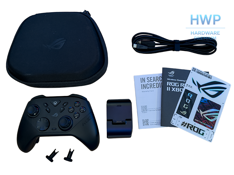 Tampoco las hay en los accesorios. Base de carga con Pogo pins, estuche rígido con hueco para cargar sin sacar el mando, dos juegos de palancas y cable mallado. El paquete completo justifica buena parte del precio por sí solo. ROG ha entendido que un mando premium se vende con todo su ecosistema alrededor, no solo con la carcasa.