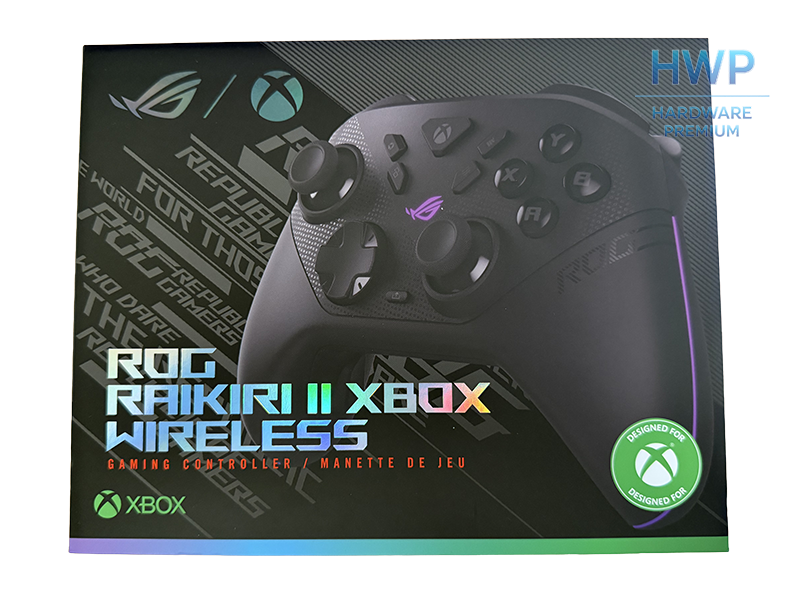 La caja exterior del ASUS ROG Raikiri II Xbox Wireless no intenta engañar a nadie. Es una presentación sobria, con tapa deslizante y moldes de cartón interiores que sujetan cada pieza en su sitio. ROG ha resuelto el unboxing con oficio, sin cajas dobles ni separadores superfluos. La sensación de producto premium llega antes incluso de tocar el mando.