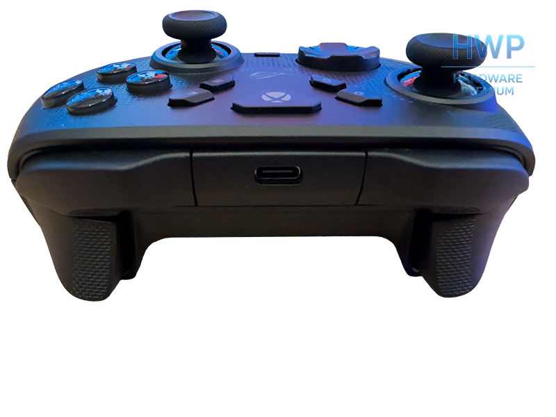 La cara frontal alberga el conector USB-C de carga y, en el lado trasero izquierdo, el jack combo de 3,5 mm para auriculares con micrófono. Este funciona tanto en Xbox como en PC. En la parte inferior aparecen los selectores físicos: modo de conectividad, plataforma Xbox o PC, modo dual de gatillos y emparejamiento. Frente al software puro de otros mandos, aquí todo se cambia sin tocar un menú.